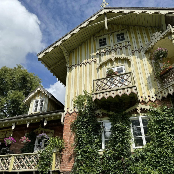 Mõisa õuel ilutseb kauni puitpitsi ja detailsete nikerdustega suvemaja, mis on otsekui ‘piparkoogimaja’ vendade Grimmide ‘Hans ja Grete’ muinasjutust.